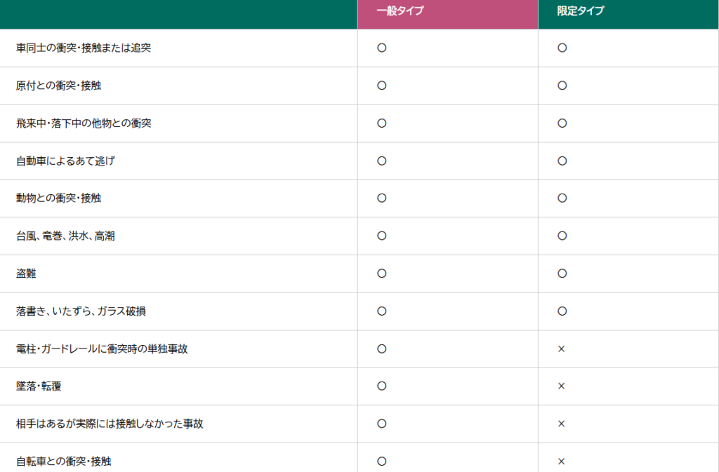 一般型(フルカバー型)の車両保険であれば、